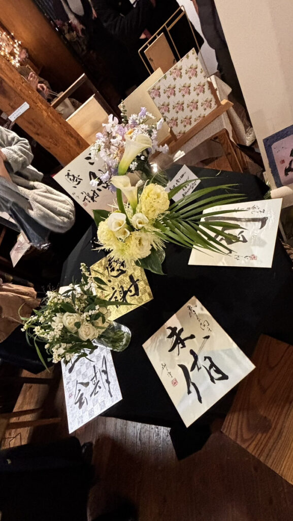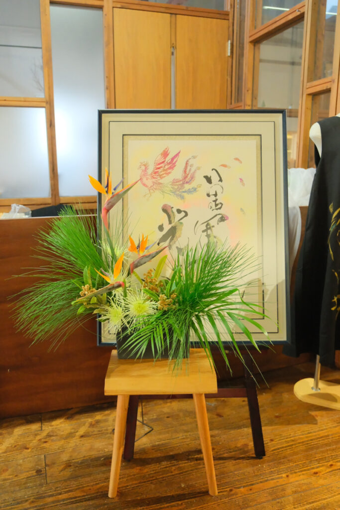 3日間で行った「書と花のデモンストレーション」は書いてほしい言葉を募り、即興でブーケを作りました。
