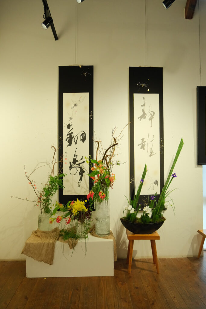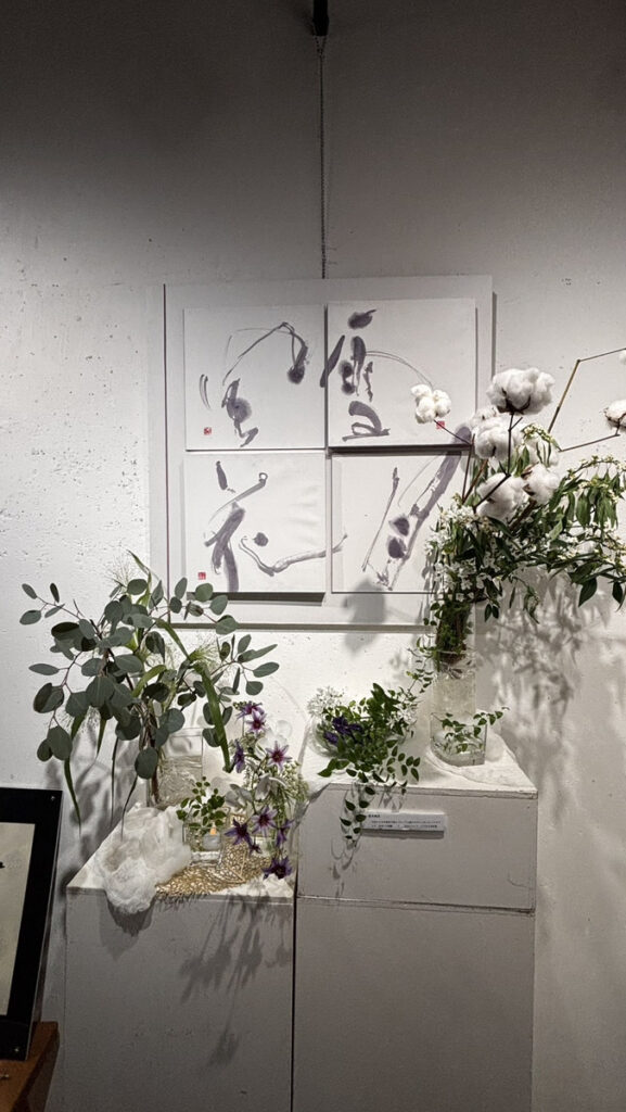 今回の展示は、「すべてのものには表と裏があるように、書にも花にも“静”と“彩”の二つの顔がある」という想いから生まれました。