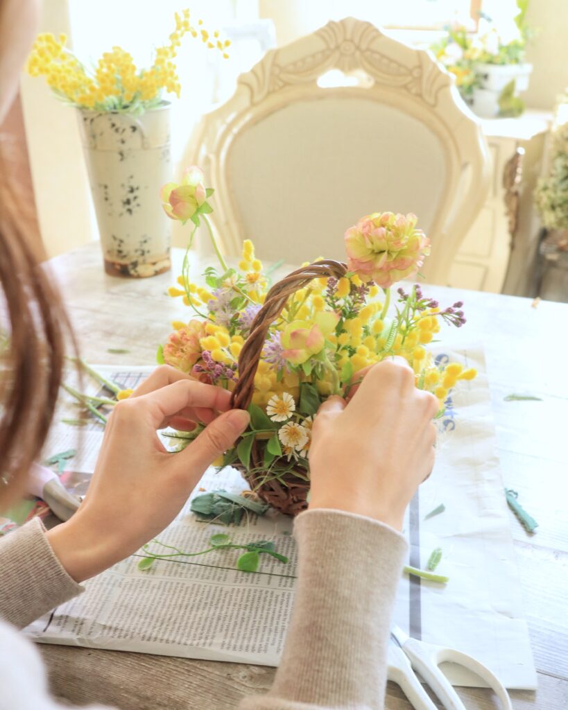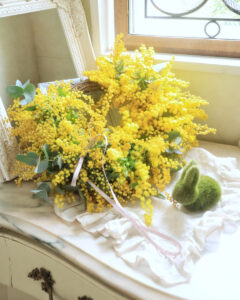 スプリングフェアでは、ミモザやスイトピーなど、春を象徴する花々を使ったさまざまなレッスンをご用意しています。