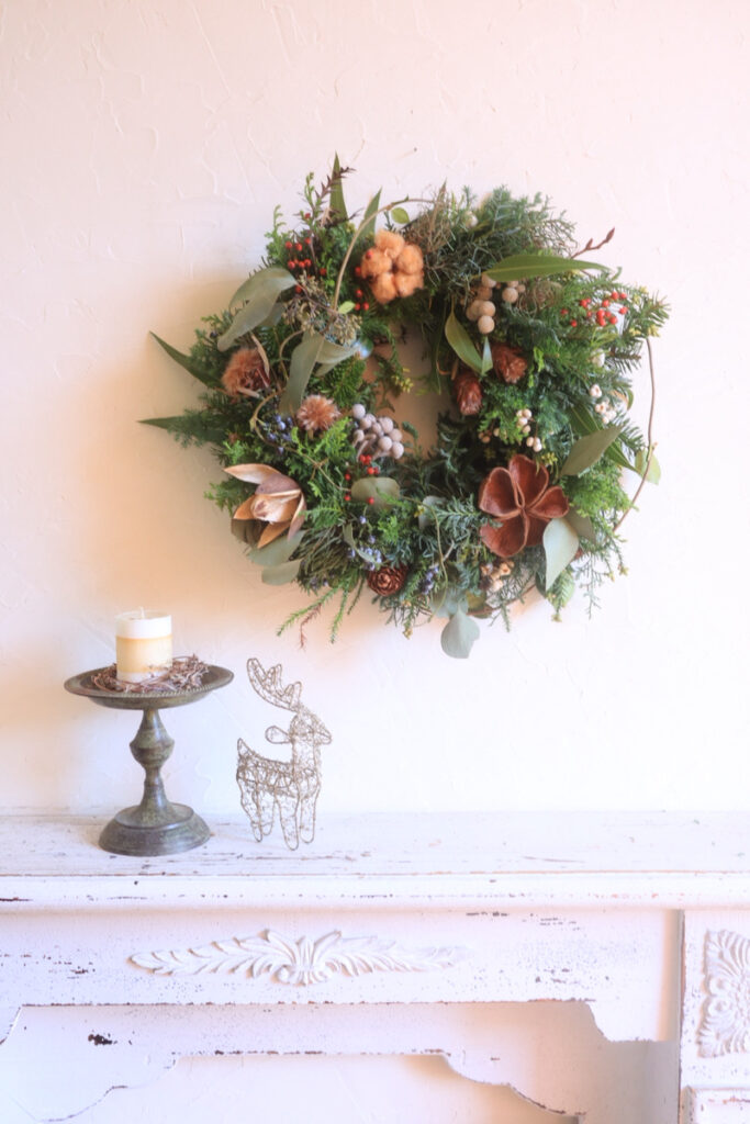 ナチュラルでありながら、洗練された大人のリースをお楽しみいただけます。